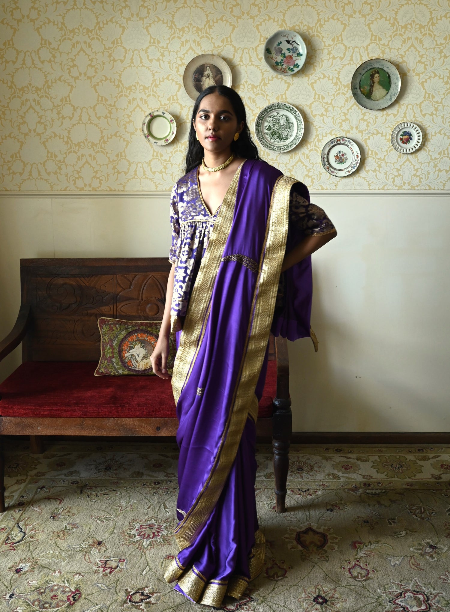 This beautiful saree offers a fresh take on classic elegance, making it a perfect piece for your Diwali. The saree is crafted from a vibrant Purple with a luxurious sheen that drapes beautifully.