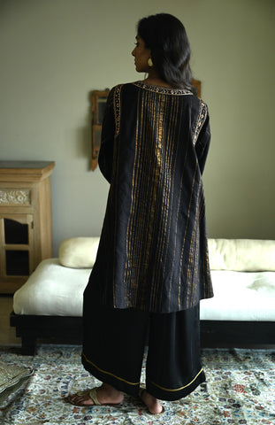 Choga in Black Tussar Khadi Stripe with Black Flared Pant