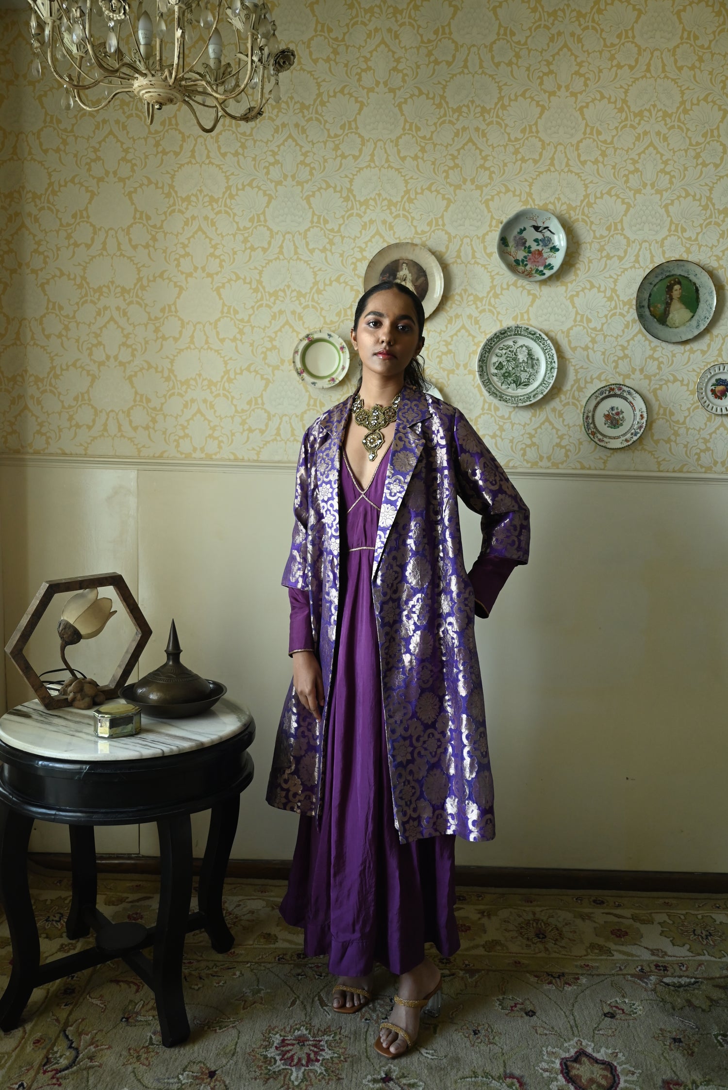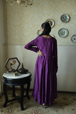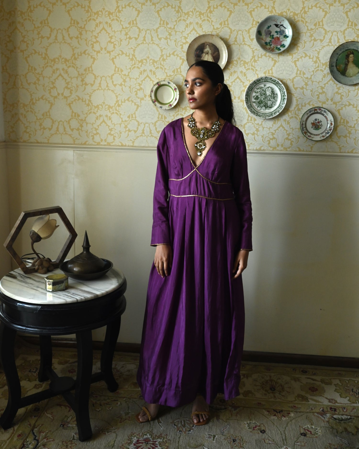 Presenting you the Princess Dress in Purple silk from Shorshe’s brand new Diwali Collection Roshnee. This dress is paired up with our New bestseller Sally Jacket in Purple Gujrat brocade for a proper Festive look.