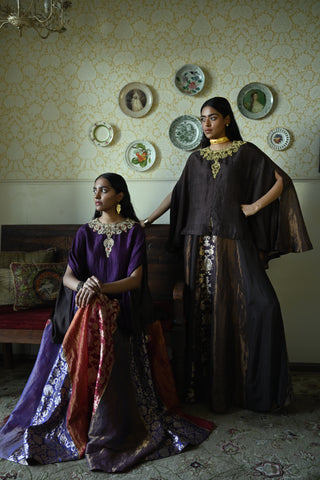 Roshni Lehenga in Purple and Red Brocade & Purple Maharani cape
