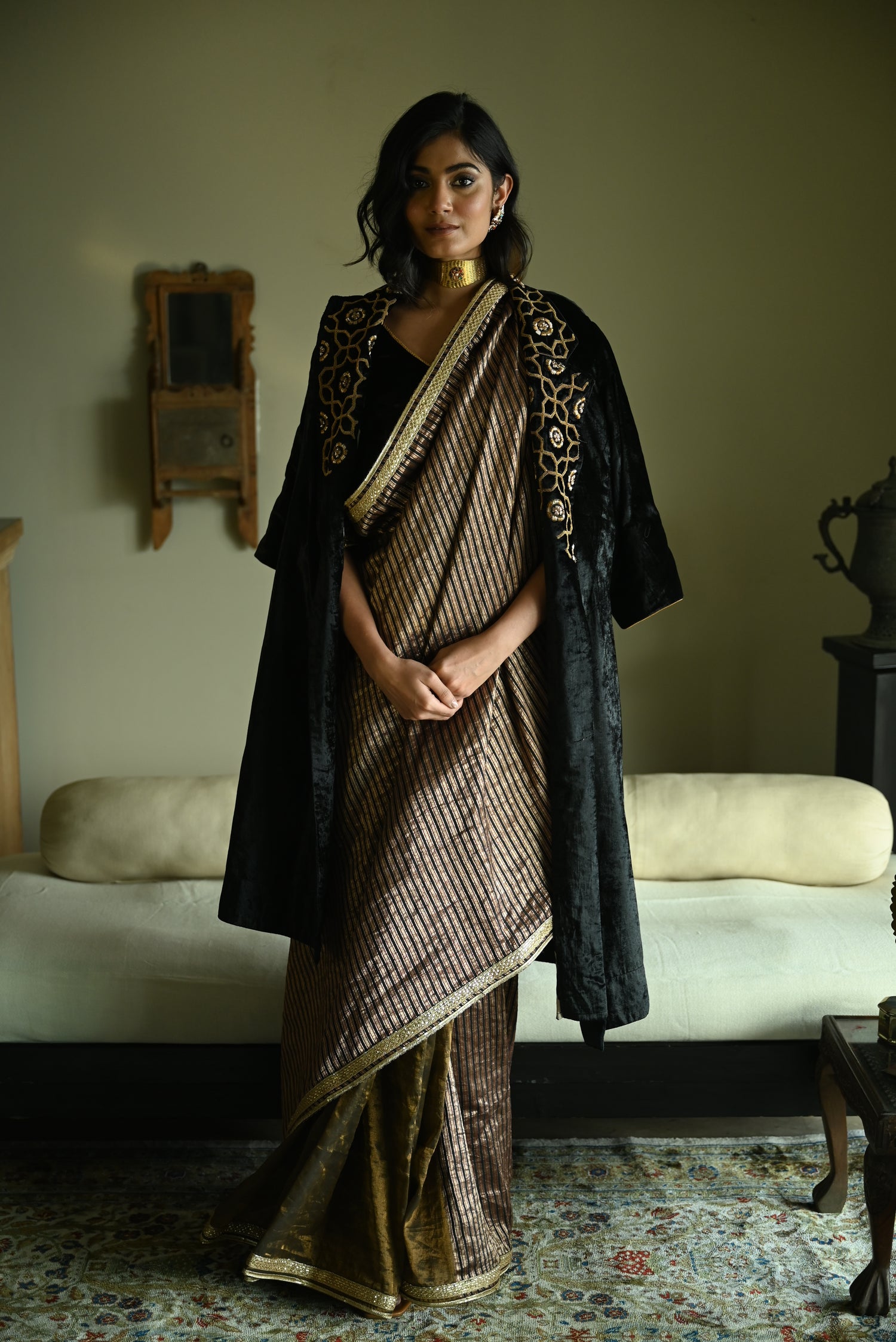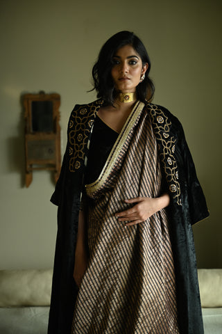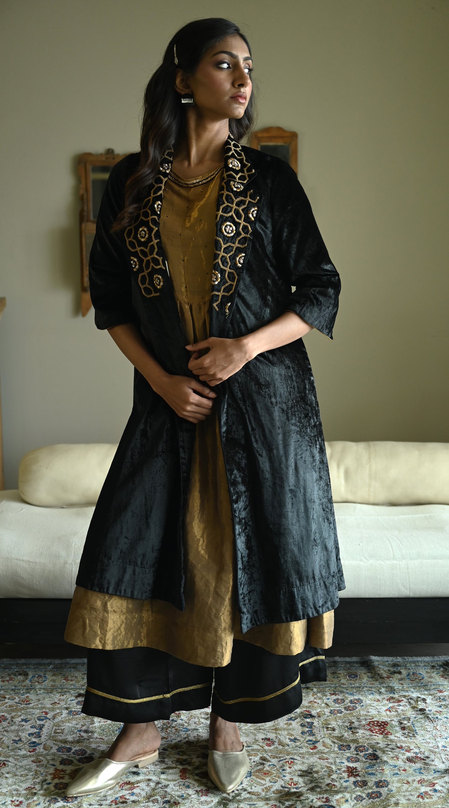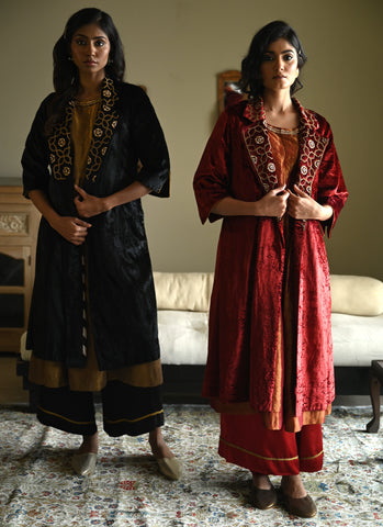 This winter season, get party ready in Shorshe’s bestseller, Sally Jacket in Black Velvet. Intricate hand embroidery on collar and lapel enhances the look of the jacket. Pair it up with any of your outfit and you are good to go